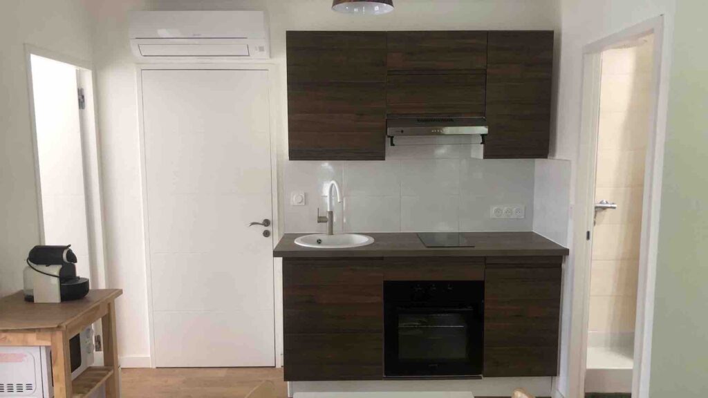 Un appartement en rez-de-chaussée offre la cinquième chambre équipée d’un lit en 180, avec une salle d’eau avec toilette et une deuxième cuisine toute équipée à proximité de la grande terrasse sous la glycine.