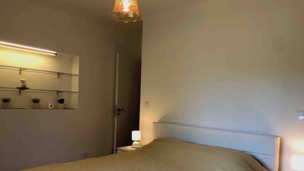 Une suite parentale équipée d’un lit en 160 avec sa salle d’eau et ses toilettes pour un peu plus d’intimité.
